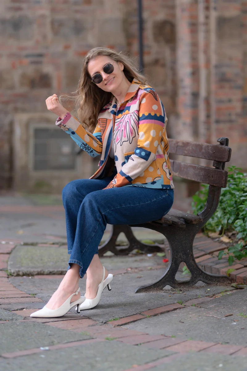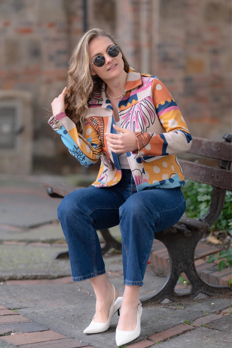 El estampado abstracto aporta un toque contemporáneo, convirtiéndola en una pieza clave para mujeres que aman vestir con personalidad y distinción.
