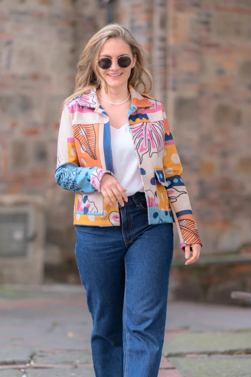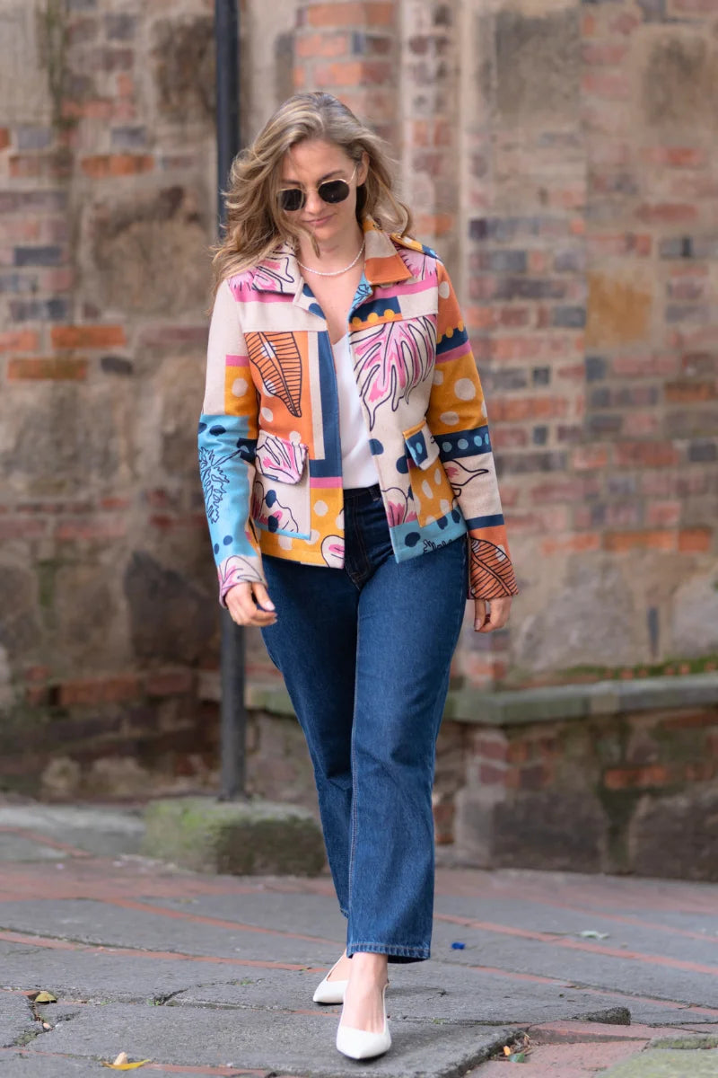 Combina la elegancia del paño con la audacia de un estampado artístico y moderno.
