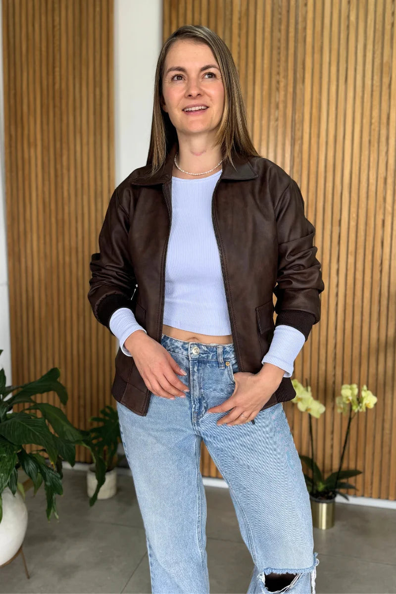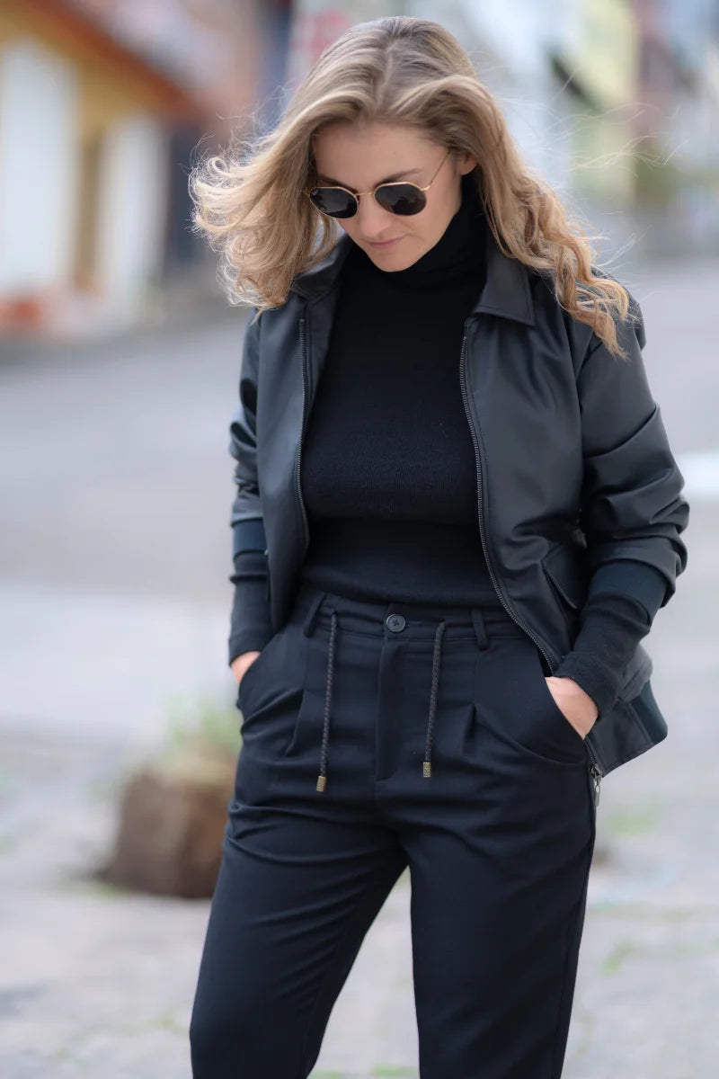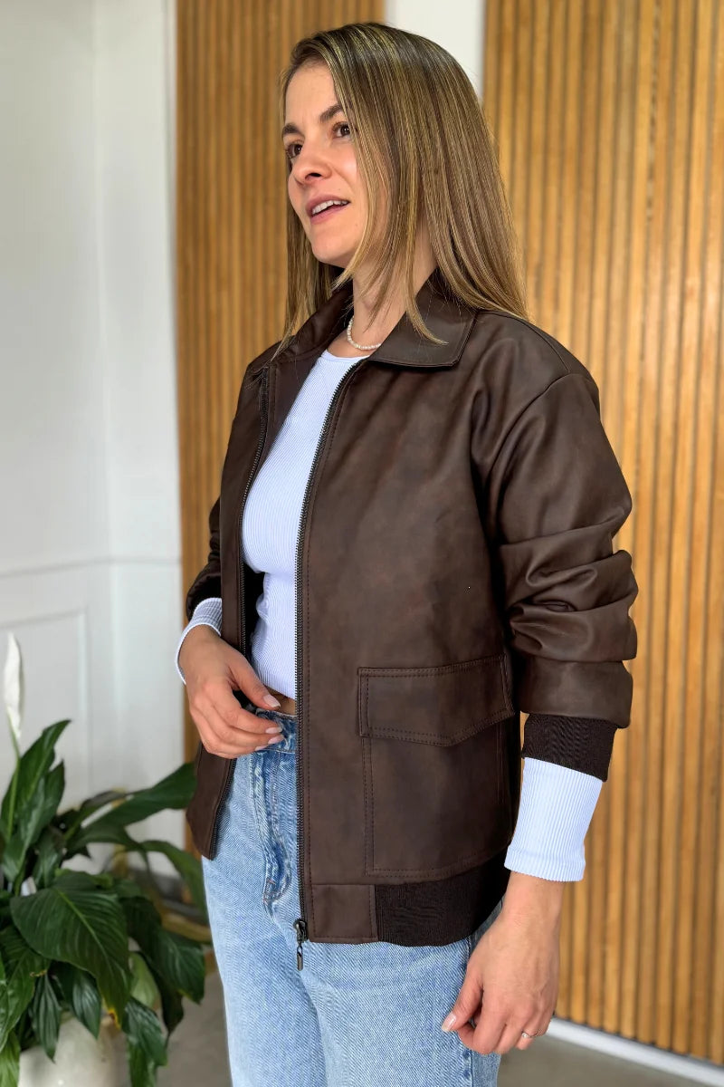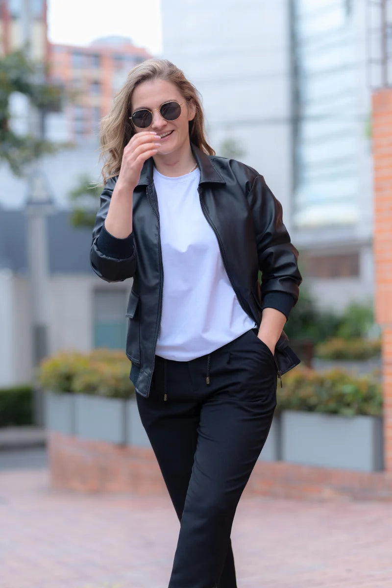 Inspirada en las tendencias de moda urbana, esta chaqueta combina a la perfección con jeans, vestidos o faldas, creando outfits versátiles que van desde lo casual hasta lo atrevido.