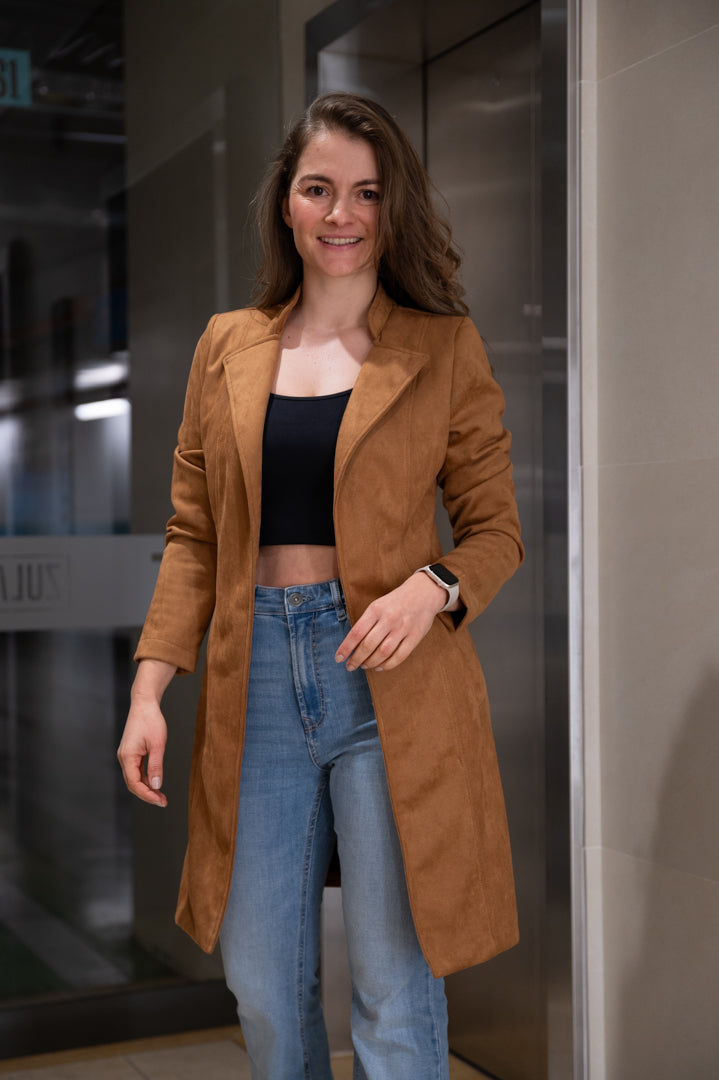 El Gaban color miel, es como en la foto. Muy hermoso y la silueta es perfecta