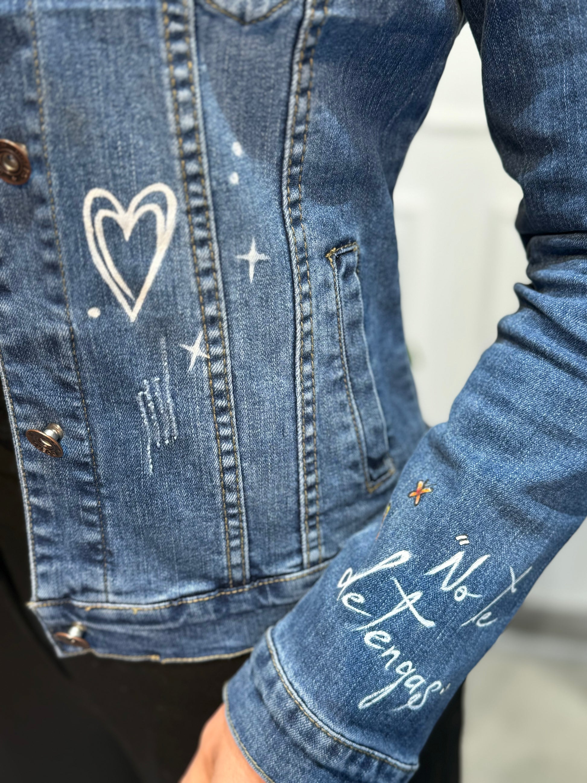 Nuestra chaqueta de Jean pintada a mano no solo es perfecta para cualquier ocasión, sino que también te permite expresar tu personalidad de una manera auténtica.