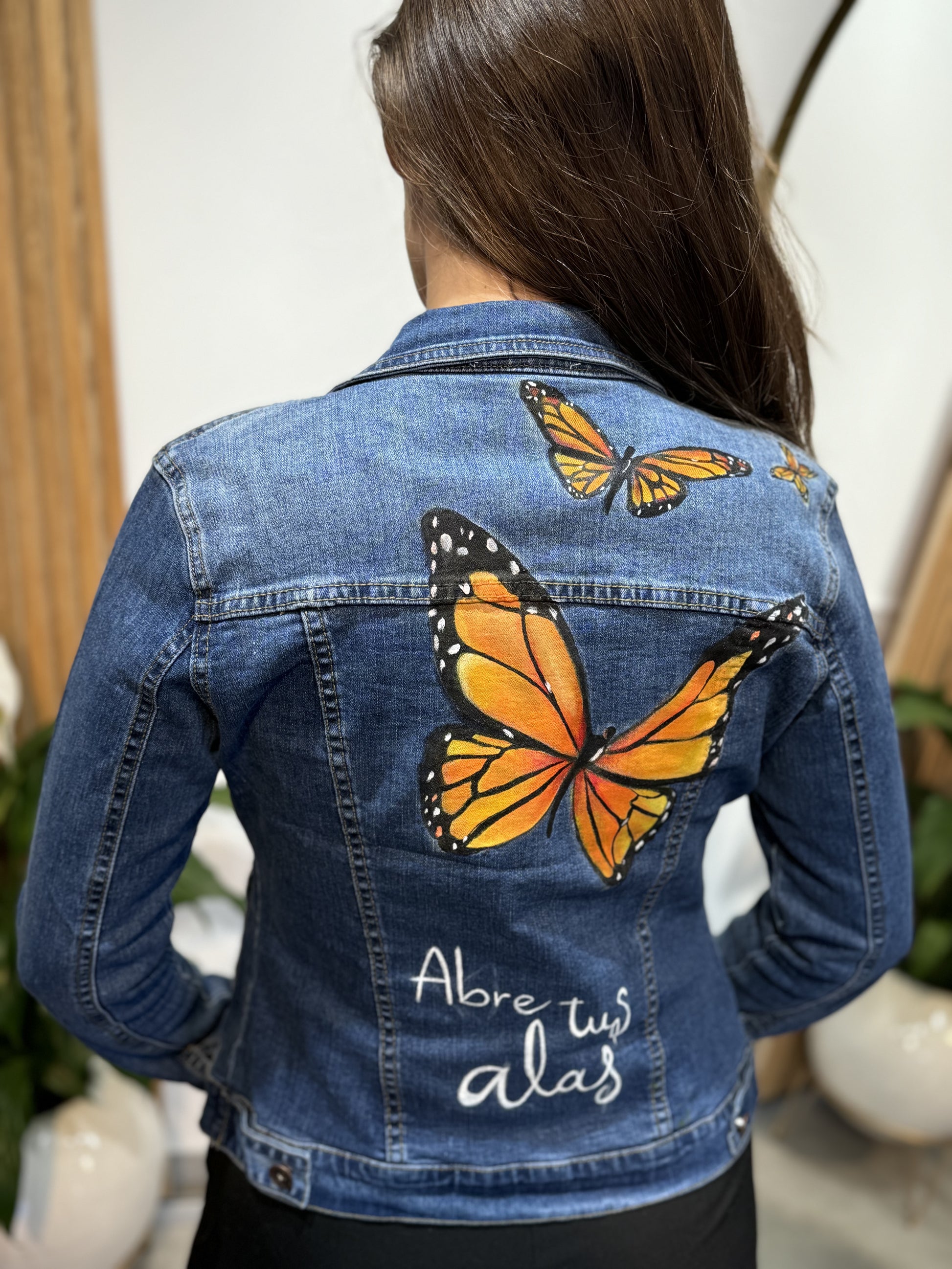 La pintura a mano le da un carácter especial, asegurando que cada chaqueta sea verdaderamente única.