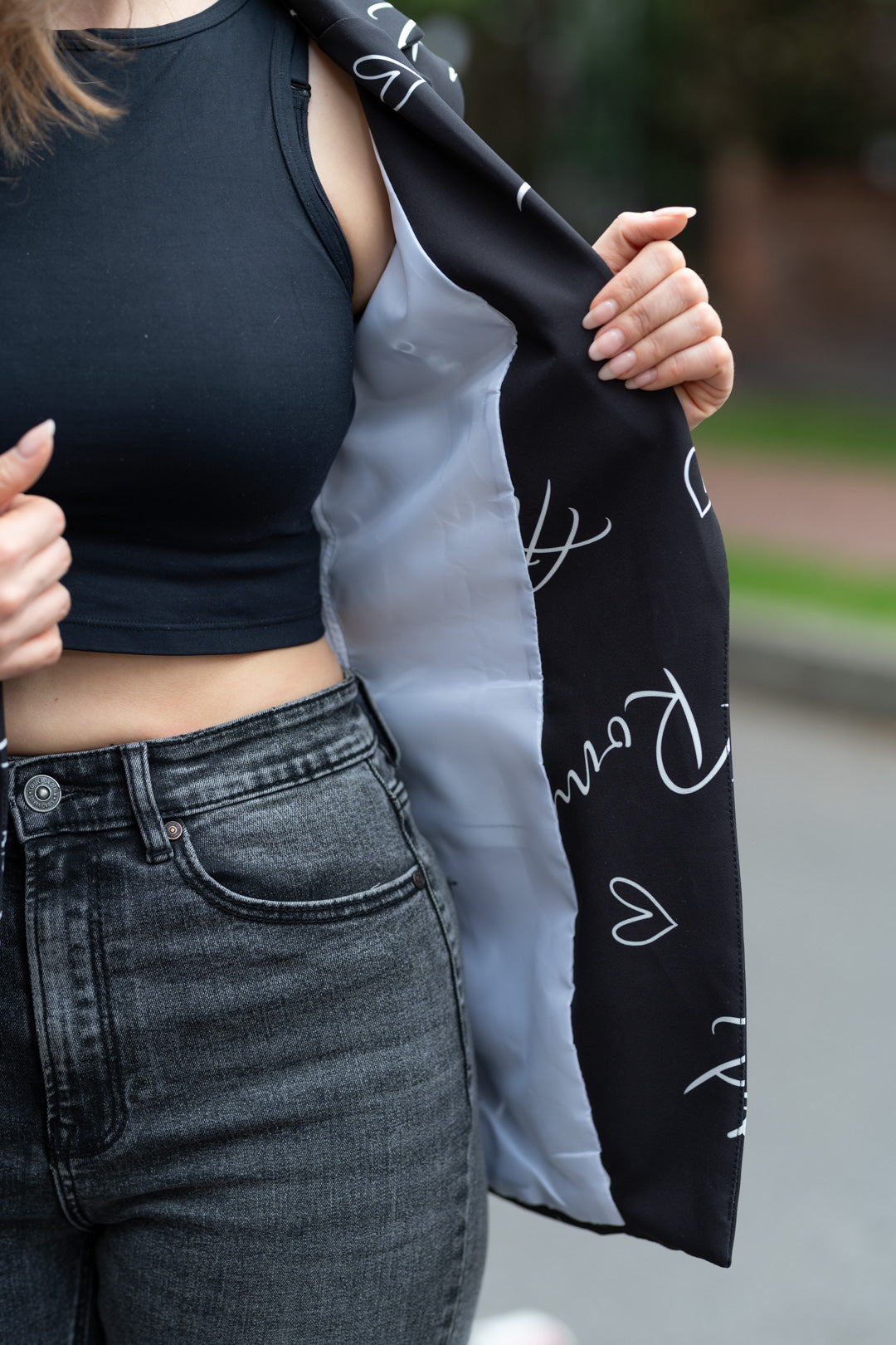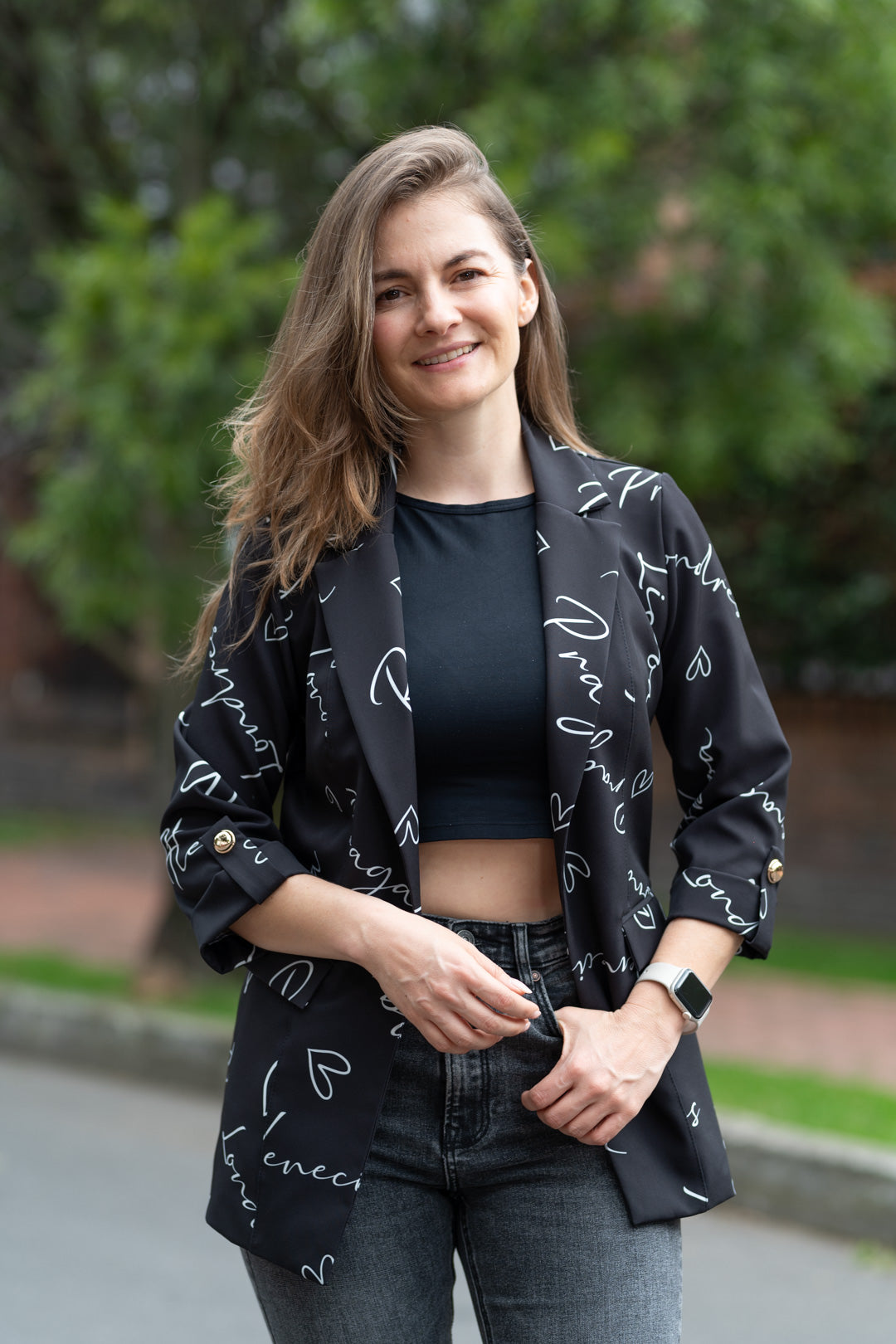 ¿Cómo estilizarlo? Combina el Blazer Negro con una blusa blanca y pantalones de tiro alto para un look profesional, o úsalo con una camiseta y jeans para un estilo casual. Su versatilidad lo convierte en una prenda esencial en tu armario.
