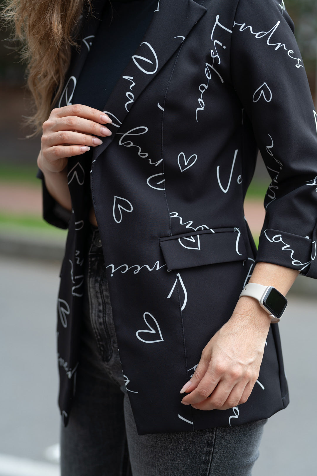 Nuestro Blazer Negro con Diseño de Figuras no solo es una prenda versátil, sino que también está diseñado para realzar tu figura y aportar un estilo único. Su color negro clásico combina a la perfección con cualquier atuendo, mientras que el innovador diseño de figuras añade un toque moderno y chic.