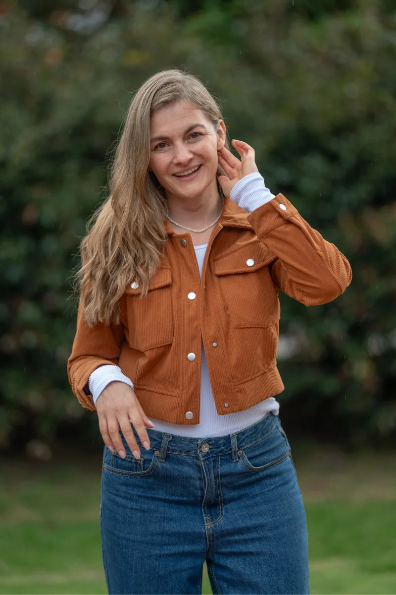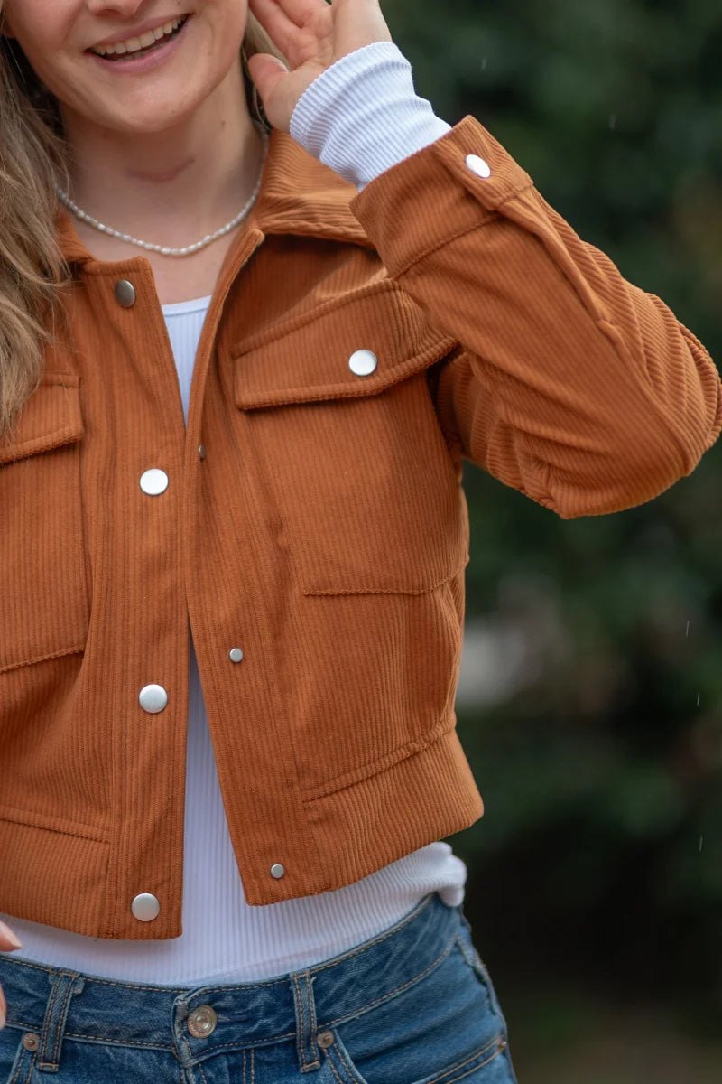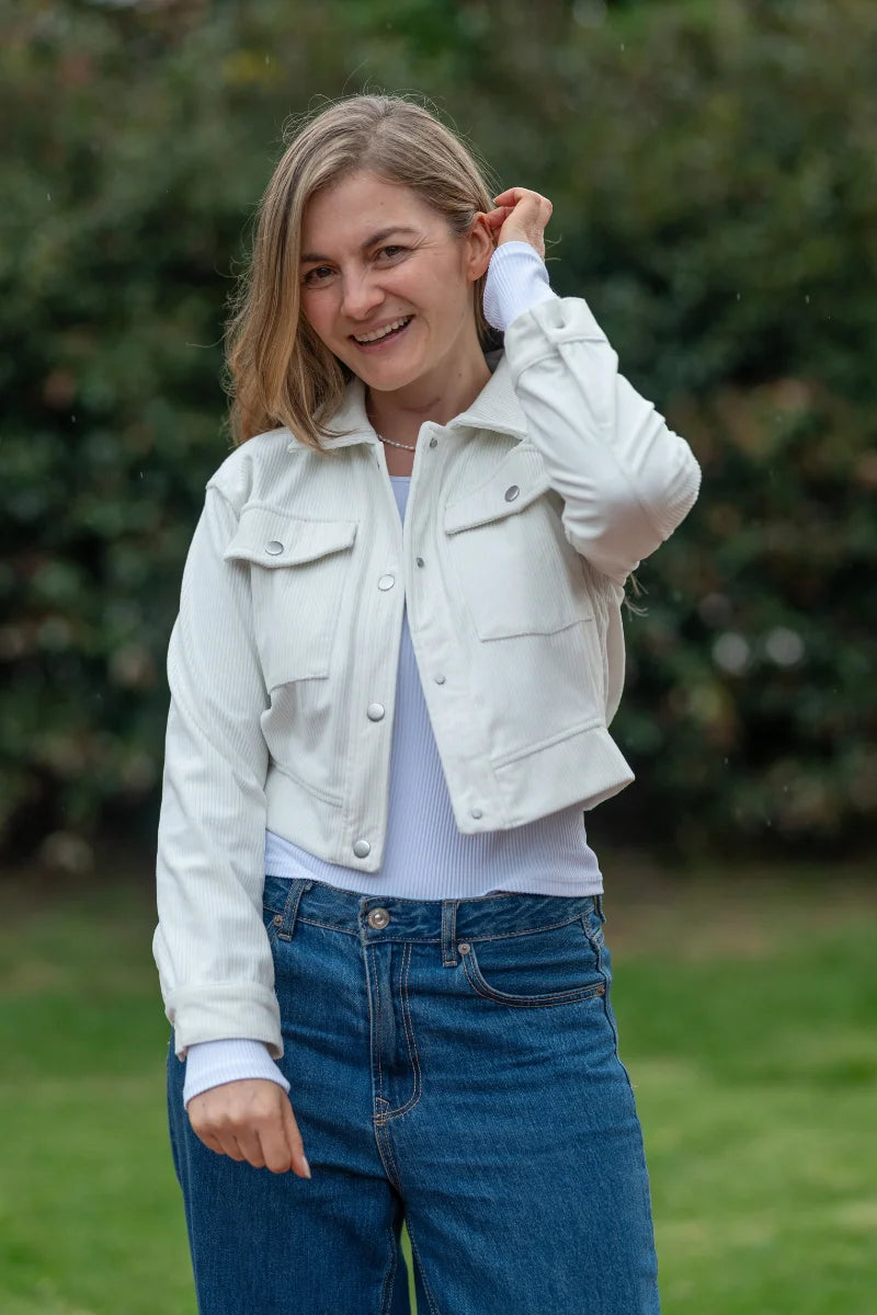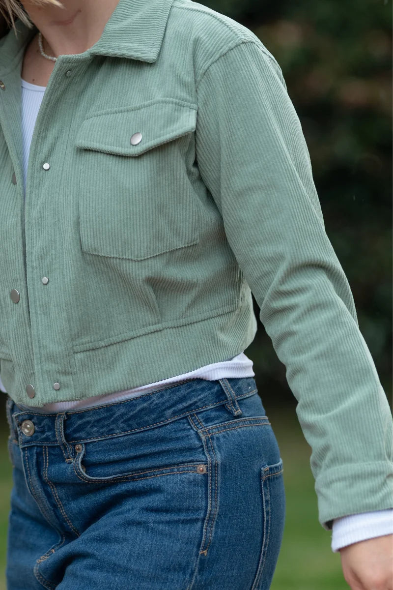 Confeccionada en suave pana de alta calidad, esta chaqueta de corte moderno es perfecta para añadir un toque chic y desenfadado a tus looks diarios.