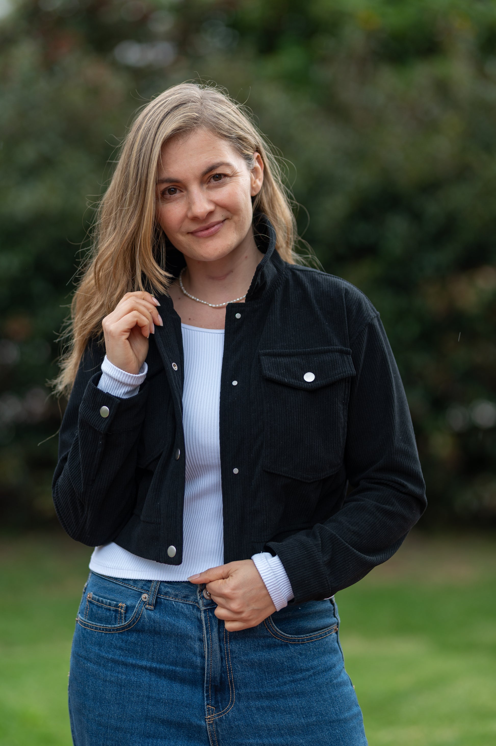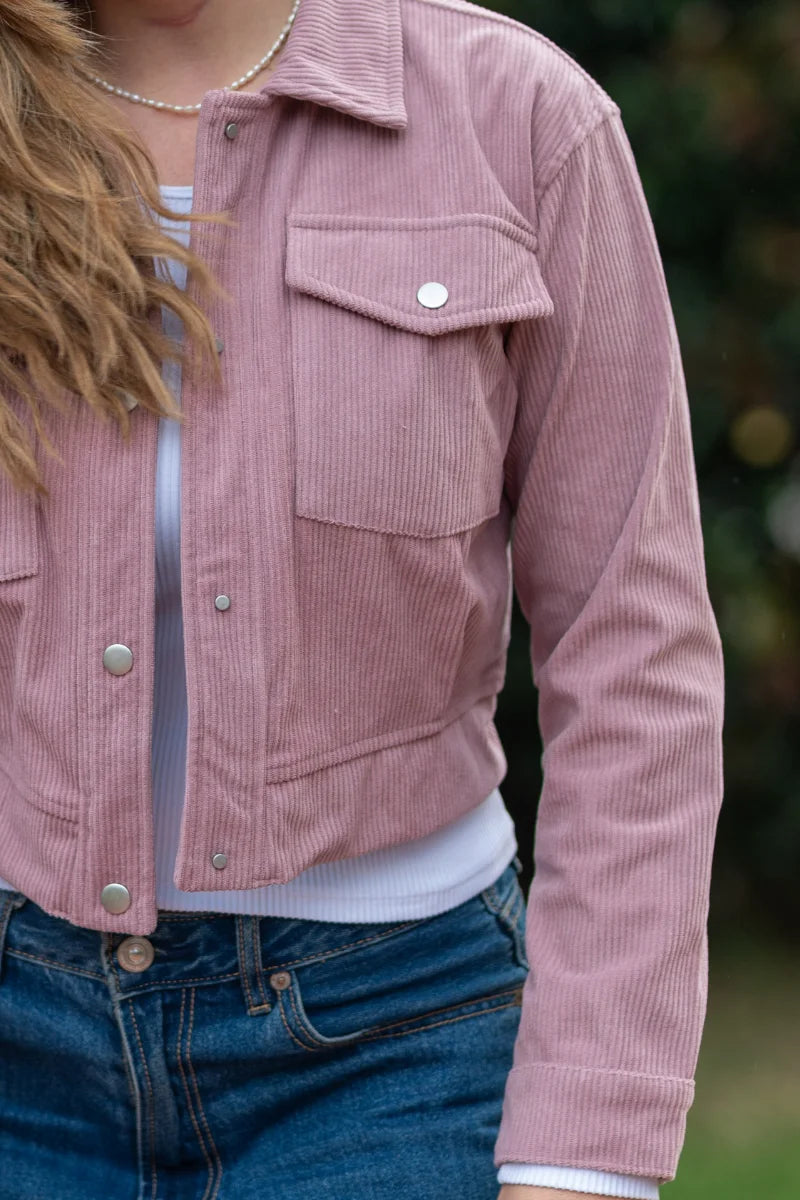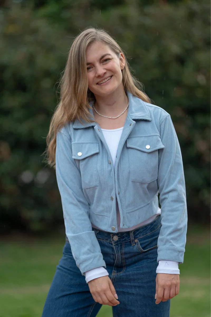 Confeccionada en suave pana de alta calidad, esta chaqueta de corte moderno es perfecta para añadir un toque chic y desenfadado a tus looks diarios.