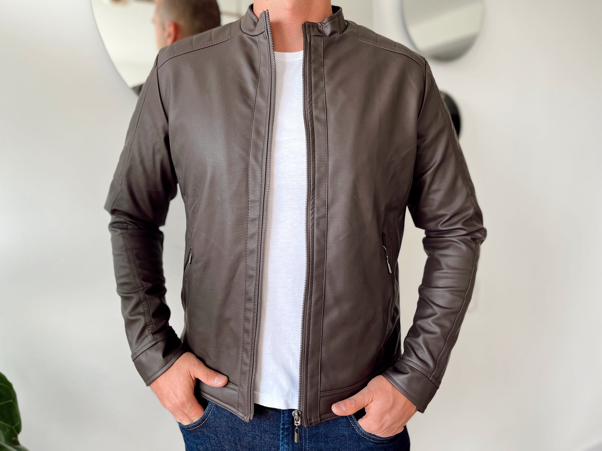 DIEGO ANDRES CABALLERO Chaqueta Biker Tipo Cuero 11003 Café