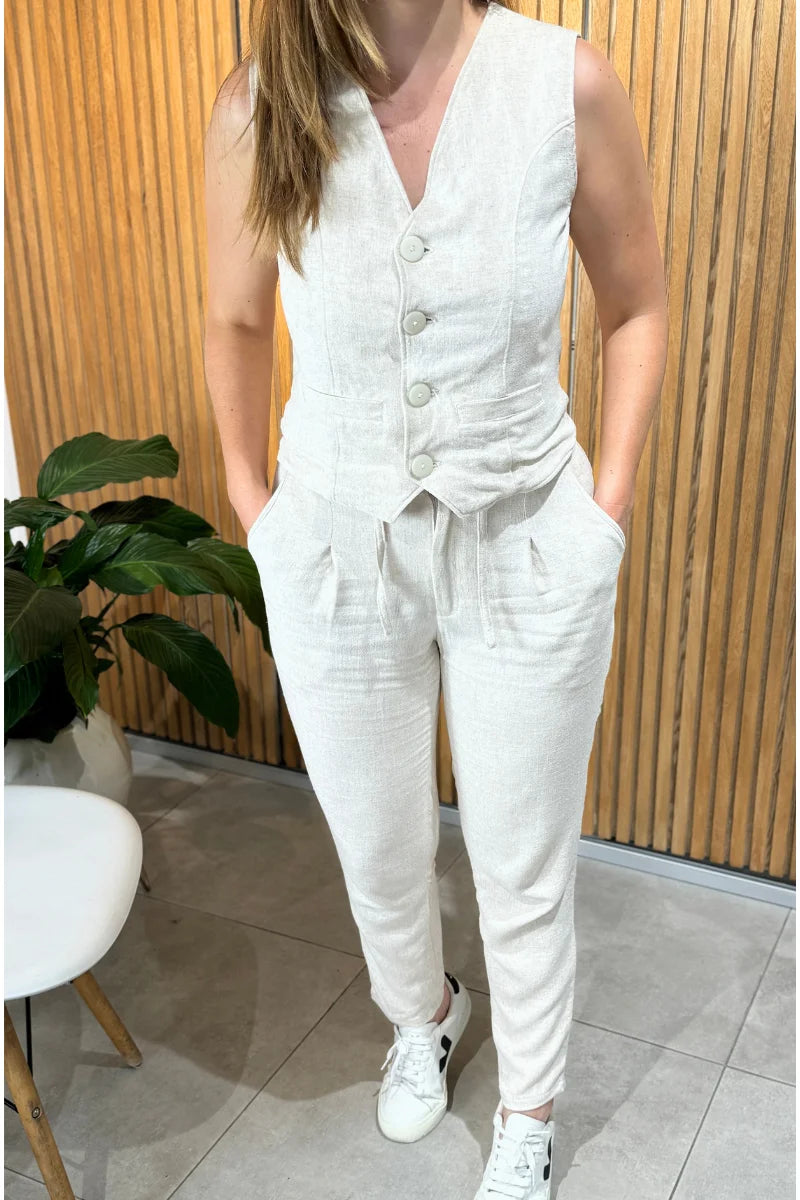 Nuestro Conjunto de Chaleco en Lino aparte de ser divino te ofrece comodidad y estilo moderno. 👌 Diseñado con cordones ajustables con detalles dorados ✨, ofrece un ajuste versátil y favorecedor.