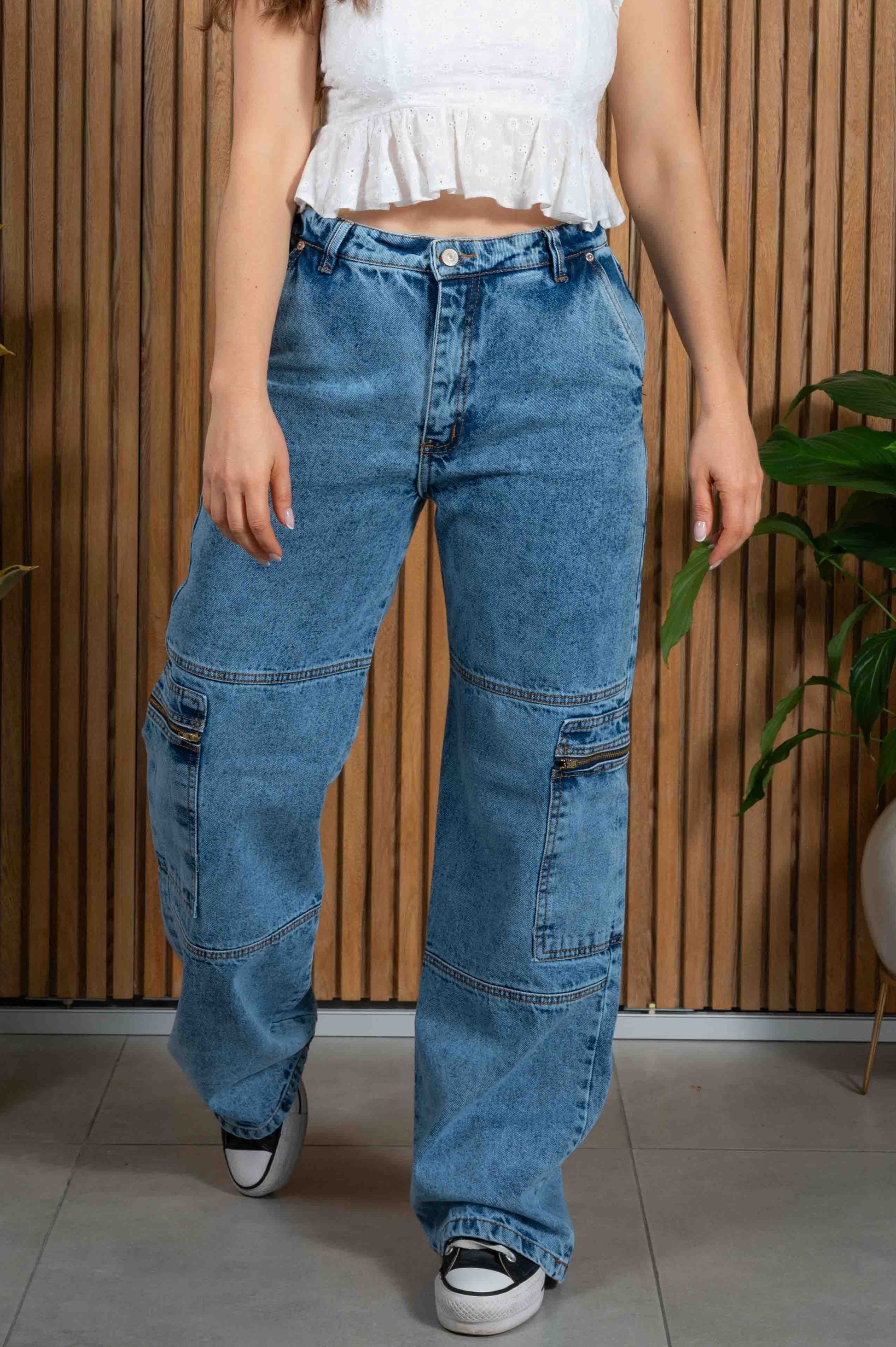 Este jean tipo cargo combina estilo urbano y funcionalidad en una prenda versátil y moderna.