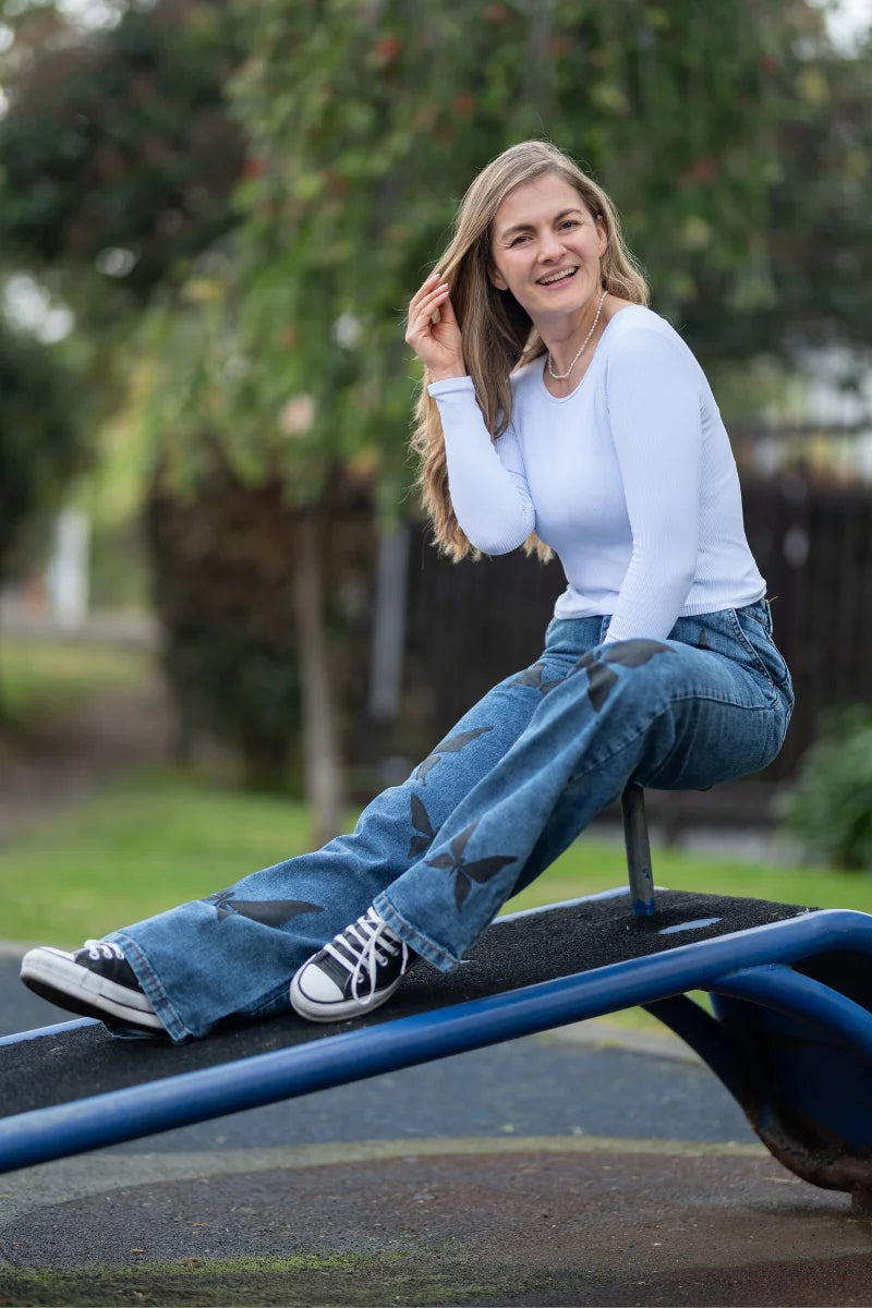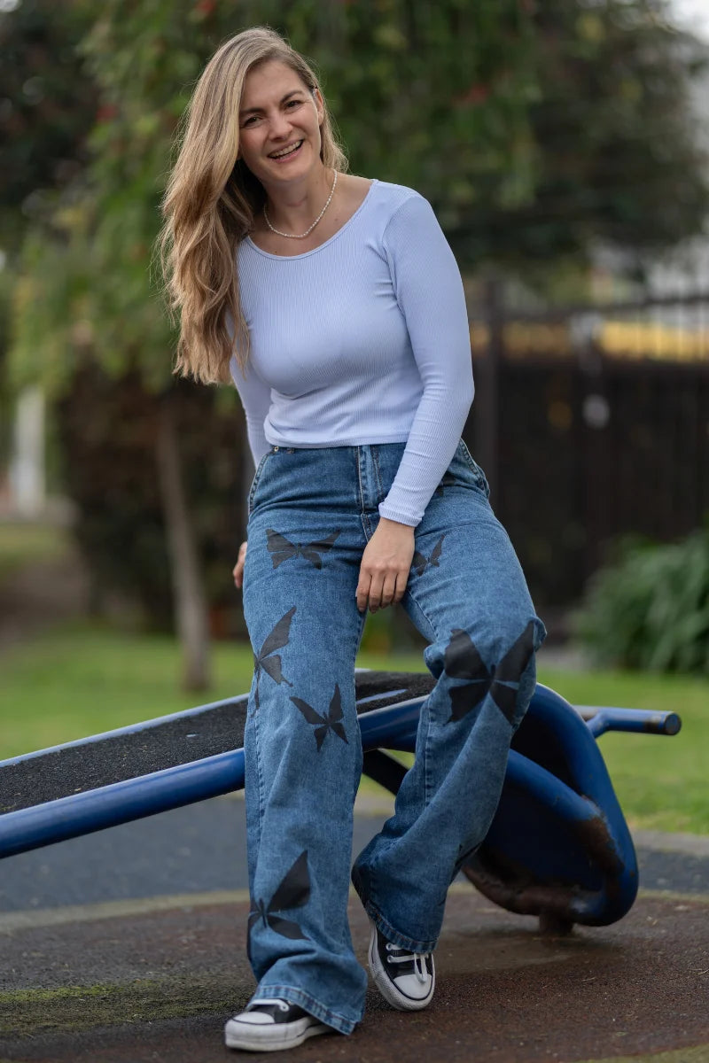 Pantalón Jean Oscuro Mariposas